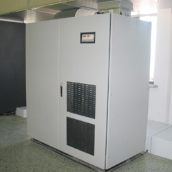 独立的空调系统,采用中央空调冷风式系统,共6台海洛斯650C空调末端机组。现该套机组制冷功率完全能够满足机房设备制冷功率要求并有较大冗余,使机房温、湿度达到要求。采用APC智能环境监控仪,使温度范围一直保持在18度-28度,湿度范围一直保持在40%-70%。